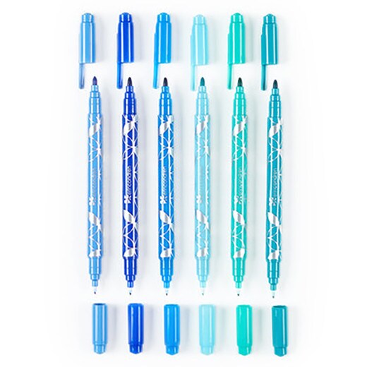- 6 Colorful Ocean Dual Tipped Markers: Cornflower, Sapphire, Navy, Turquoise, Mermaid & Teal